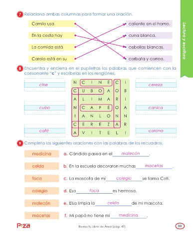 9 Completa las siguientes oraciones con las palabras de los recuadros.