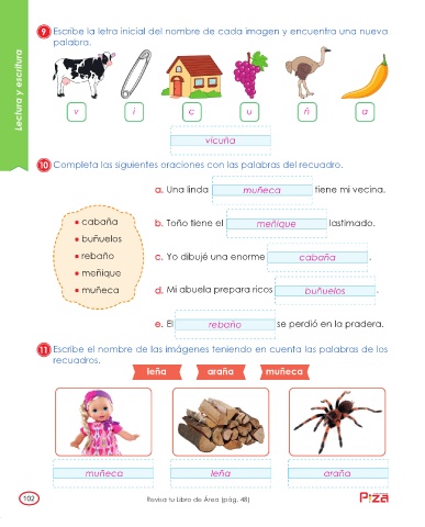 9 Escribe la letra inicial del nombre de cada imagen y encuentra una nueva