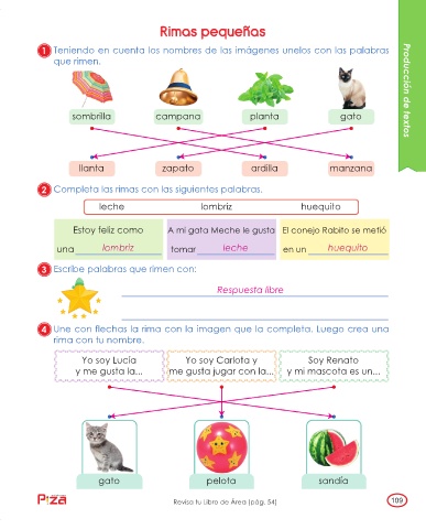 4 Une con flechas la rima con la imagen que la completa. Luego crea una