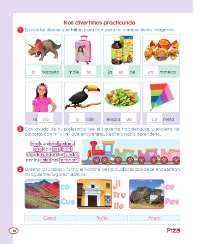 1 Escribe las sílabas que faltan para completar el nombre de las imágenes.