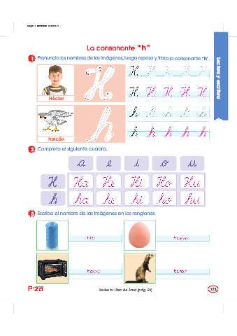 1 Pronuncia los nombres de las imágenes, luego repasa y traza la consonante “h”.
