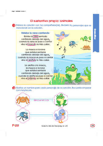 1 Entona la canción con tus compañeros(as). Encierra los personajes que se