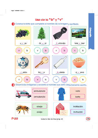 1 Colorea la letra que complete el nombre de la imagen y escríbela. Ortografía