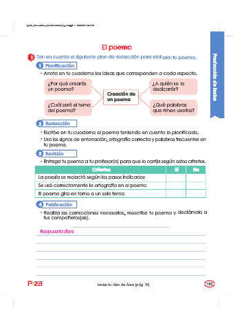 1 Ten en cuenta el siguiente plan de redacción para elaborar tu poema.