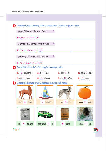 4 Ordena las palabras y forma oraciones. Coloca el punto final.