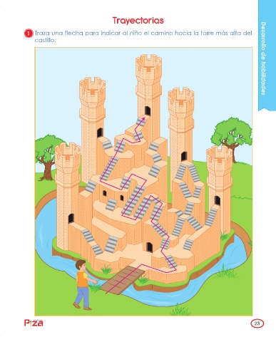 23.pdf 1 18/08/2018 9:12:32 a. m. Trayectorias 1 Traza una flecha para indicar al niño el camino hacia la torre más alta del castillo. Desarrollo de habilidades ediciones 23