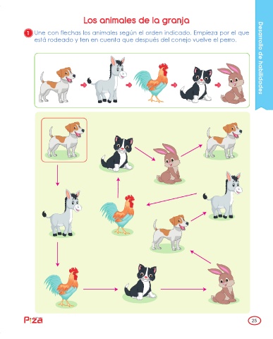 1 Une con flechas los animales según el orden indicado. Empieza por el que