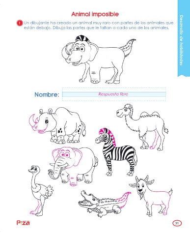 están debajo. Dibuja las partes que le faltan a cada uno de los animales. Desarrollo de habilidades