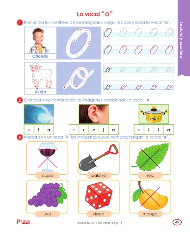 1 Pronuncia los nombres de las imágenes, luego repasa y traza la vocal “o”.