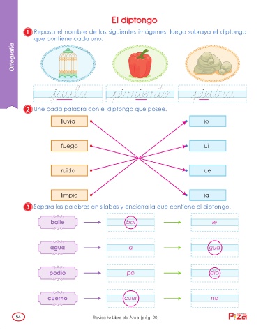 1 Repasa el nombre de las siguientes imágenes, luego subraya el diptongo