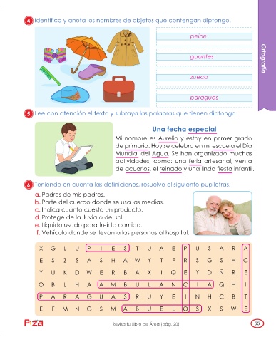 4 Identifica y anota los nombres de objetos que contengan diptongo.