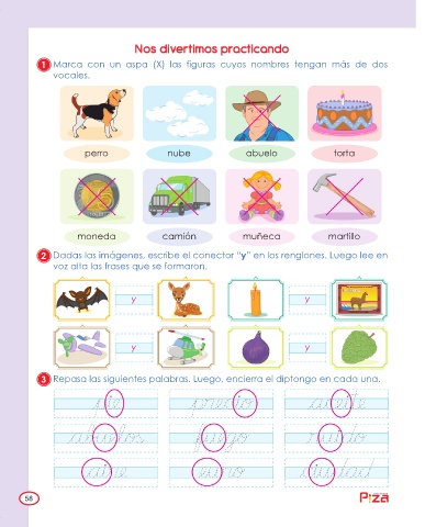2 Dadas las imágenes, escribe el conector “y” en los renglones. Luego lee en
