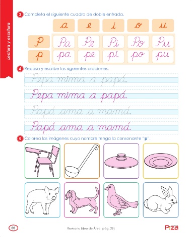 5 Colorea las imágenes cuyo nombre tenga la consonante “p”.