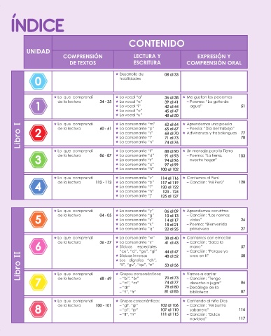 4 de la lectura 112 - 113 La consonante “b” 117 al 119 – Canción: “Mi Perú” 128