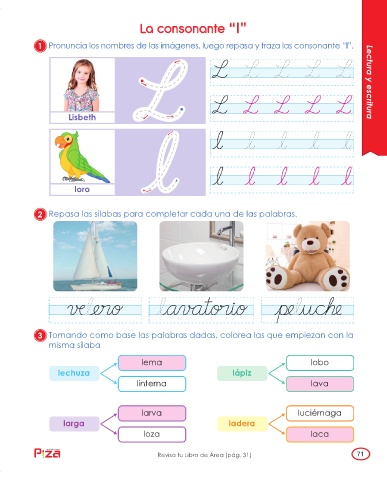 1 Pronuncia los nombres de las imágenes, luego repasa y traza las consonante “l”.