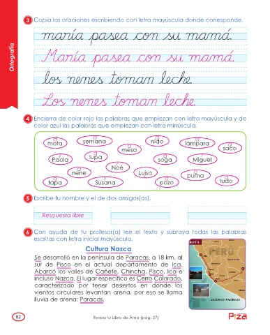 4 Encierra de color rojo las palabras que empiezan con letra mayúscula y de
