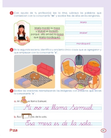 7 Escribe las oraciones reemplazando las imágenes con palabras que llevan