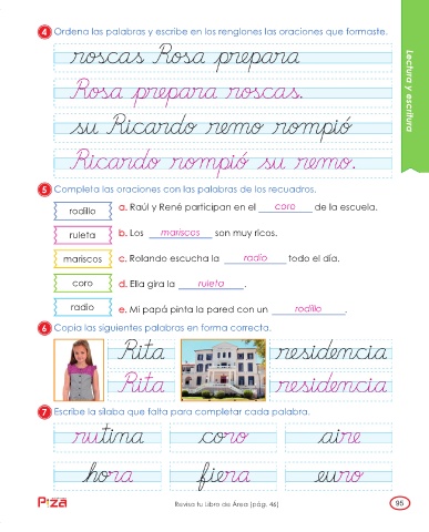 4 Ordena las palabras y escribe en los renglones las oraciones que formaste. Lectura y escritura