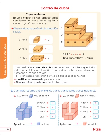1° Nivel = 6 Rpta: En total hay 12 cajas.