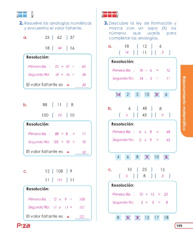 Resuelve las analogías numéricas Descubre la ley de formación y