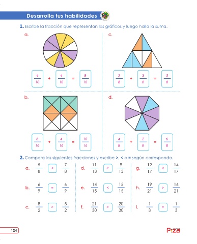 Compara las siguientes fracciones y escribe >, < o = según corresponda.