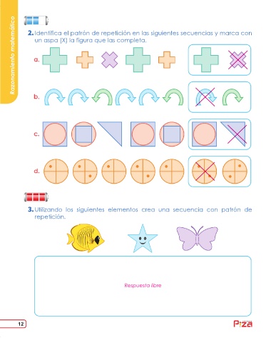 Identifica el patrón de repetición en las siguientes secuencias y marca con