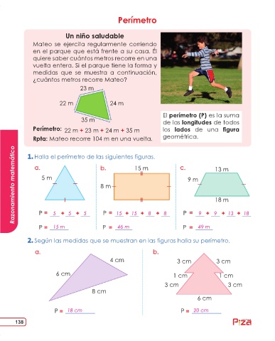 Rpta: Mateo recorre 104 m en una vuelta. geométrica.