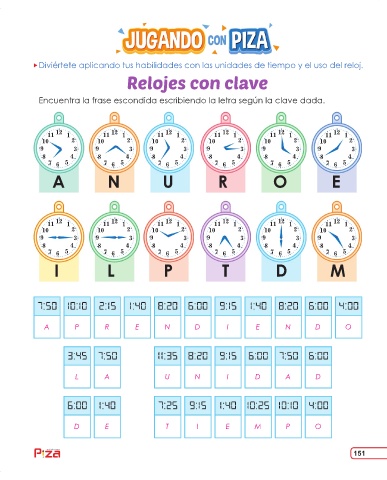 Diviértete aplicando tus habilidades con las unidades de tiempo y el uso del reloj.