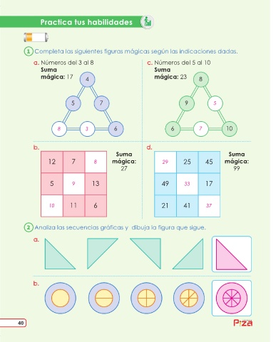 Completa las siguientes figuras mágicas según las indicaciones dadas.