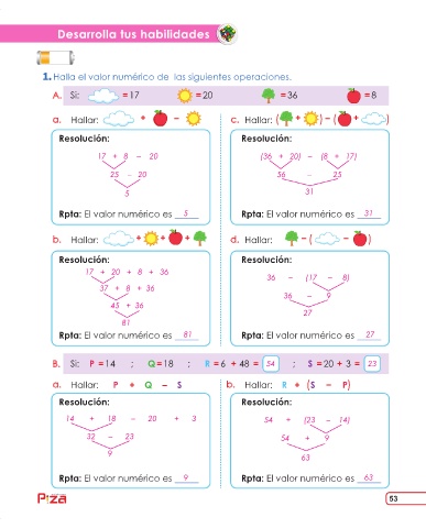 Rpta: El valor numérico es 9 Rpta: El valor numérico es 63