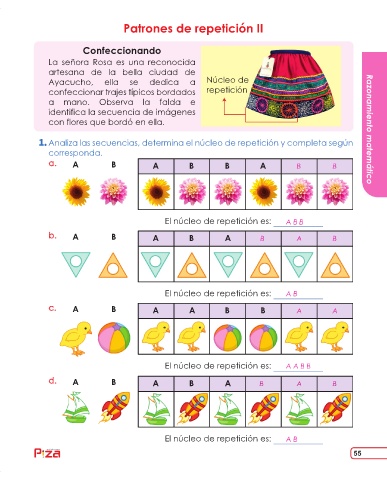 Analiza las secuencias, determina el núcleo de repetición y completa según