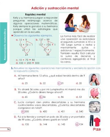 Resuelve las siguientes operaciones mentalmente y encierra la opción con
