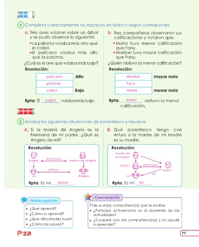 Rpta: El colibrí volaba más bajo. Rpta: María obtuvo la menor
