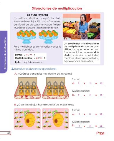 Rpta: Hay 14 duraznos. equivalencias entre otros.