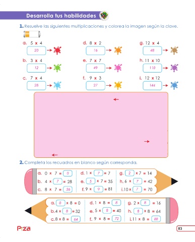 Resuelve las siguientes multiplicaciones y colorea la imagen según la clave.