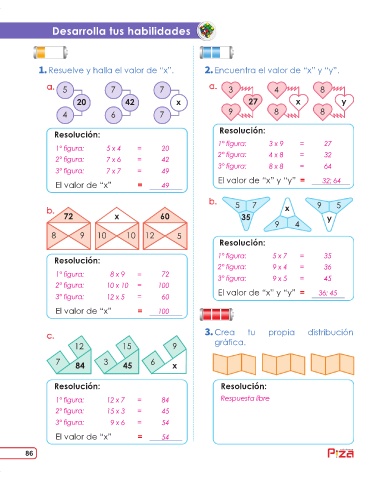 Resuelve y halla el valor de “x”. Encuentra el valor de “x” y “y”.