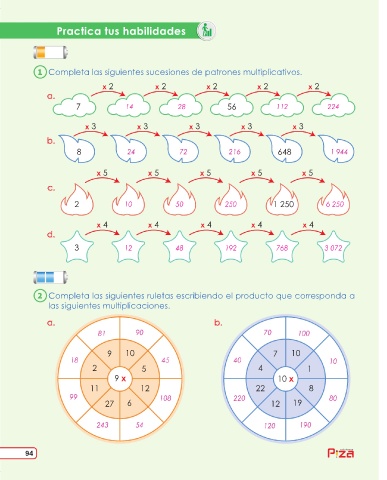 Completa las siguientes sucesiones de patrones multiplicativos.