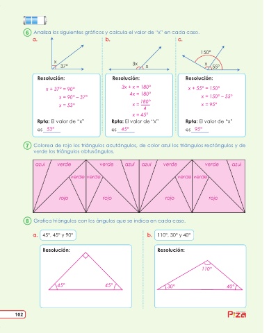 Colorea de rojo los triángulos acutángulos, de color azul los triángulos rectángulos y de
