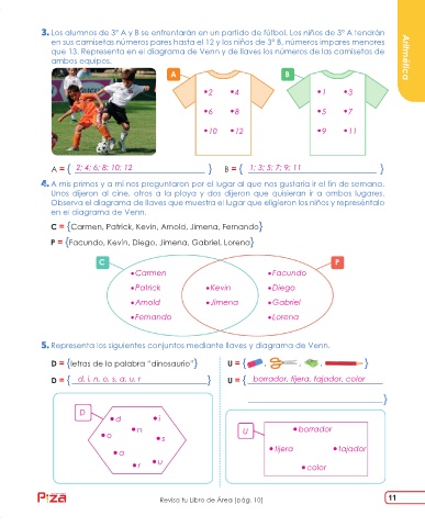 que 13. Representa en el diagrama de Venn y de llaves los números de las camisetas de