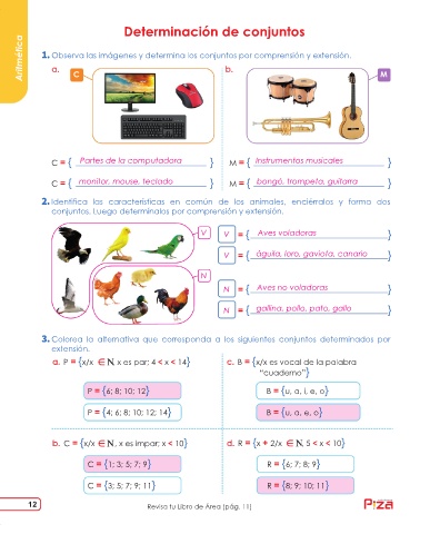 Aritmética Observa las imágenes y determina los conjuntos por comprensión y extensión. M