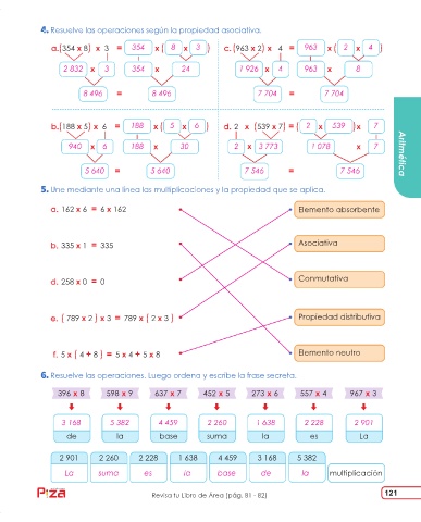 e. ( 789 x 2 ) x 3 = 789 x ( 2 x 3 ) Propiedad distributiva