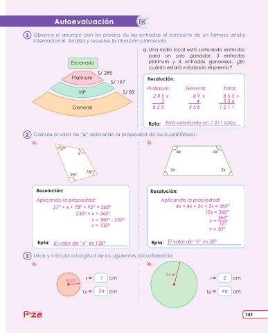Calcula el valor de “x” aplicando la propiedad de los cuadriláteros.