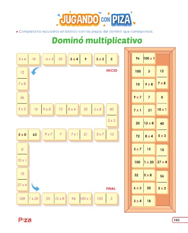 Completa los recuadros en blanco con las piezas del dominó que corresponda.