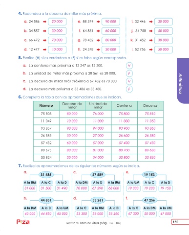 c. La decena de millar más próxima a 67 482 es 70 000. V Aritmética
