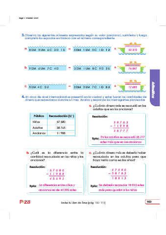 Observa los siguientes números expresados según su valor posicional, sustráelos y luego