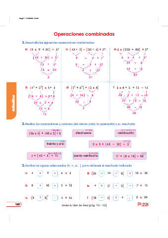 Realiza las operaciones y colorea del mismo color la operación y su resultado.