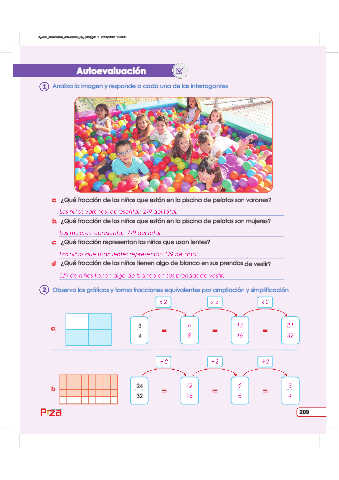 Observa los gráficos y forma fracciones equivalentes por ampliación y simplificación.