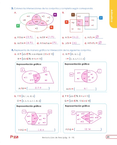 Colorea las intersecciones de los conjuntos y completa según corresponda.