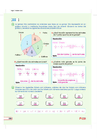 gráfico circular y mediante fracciones cada tipo de animal. Observa los datos del