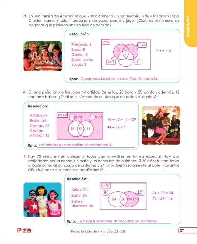 f. Hay 70 niños en un colegio y todos van a vestirse en forma especial. Hay dos